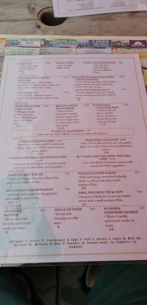 The menu at South Pole Inn offers a straightforward yet satisfying selection that pairs well with its warm, historically rich atmosphere. You’ll find a mix of classic Irish pub favorites alongside comforting dishes and hearty bites designed to be enjoyed throughout the day, whether stopping in for a casual lunch or settling in for a relaxed evening meal.